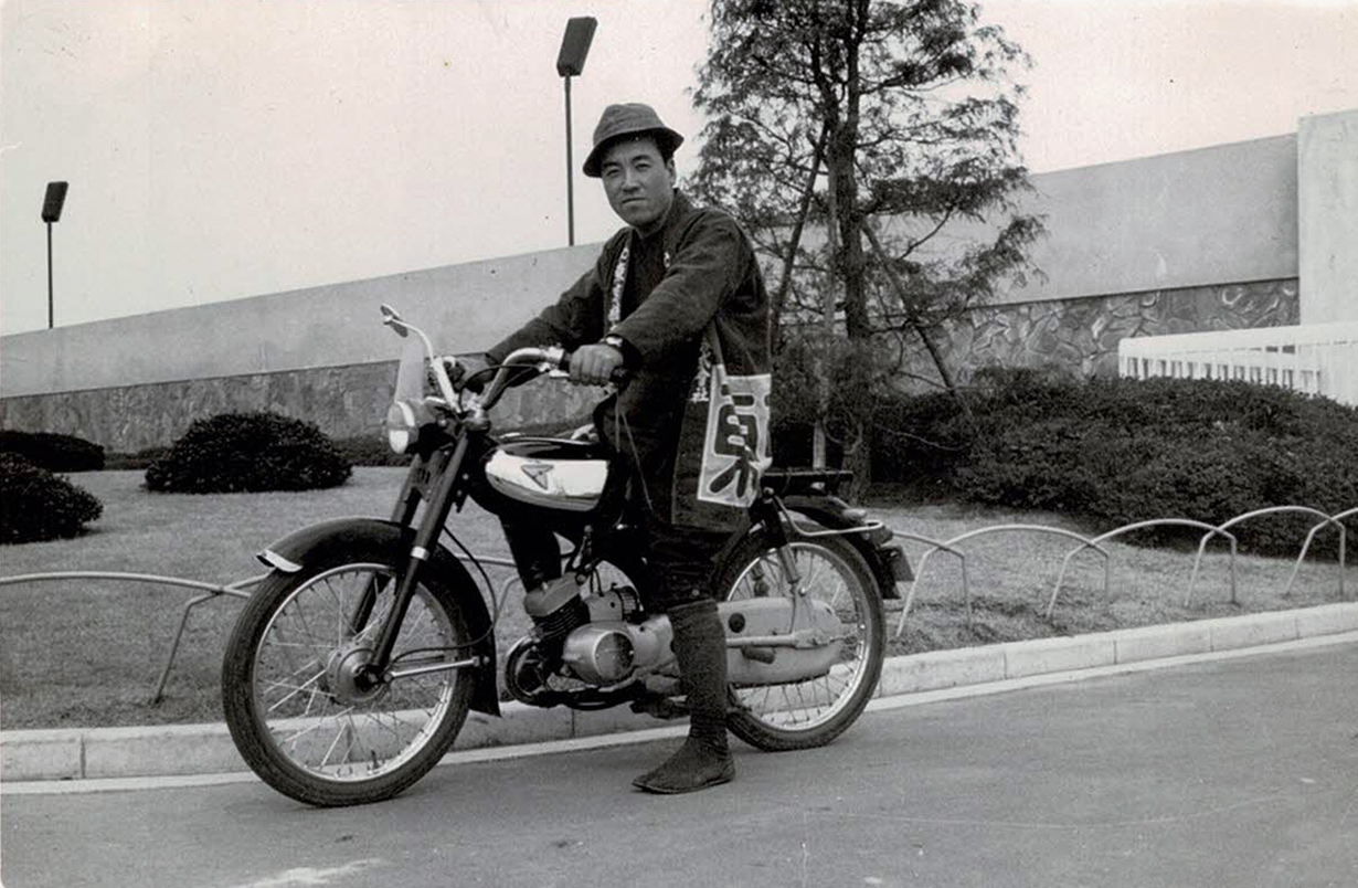 昭和40年(1965年)当時の愛車、東京発動機トーハツランペットCA50で現場に